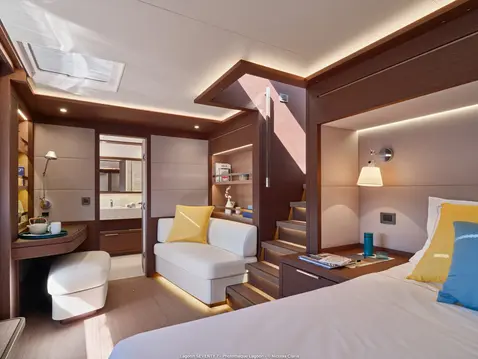 Add a 60-bottle wine cellar in the master bedroom bilge.